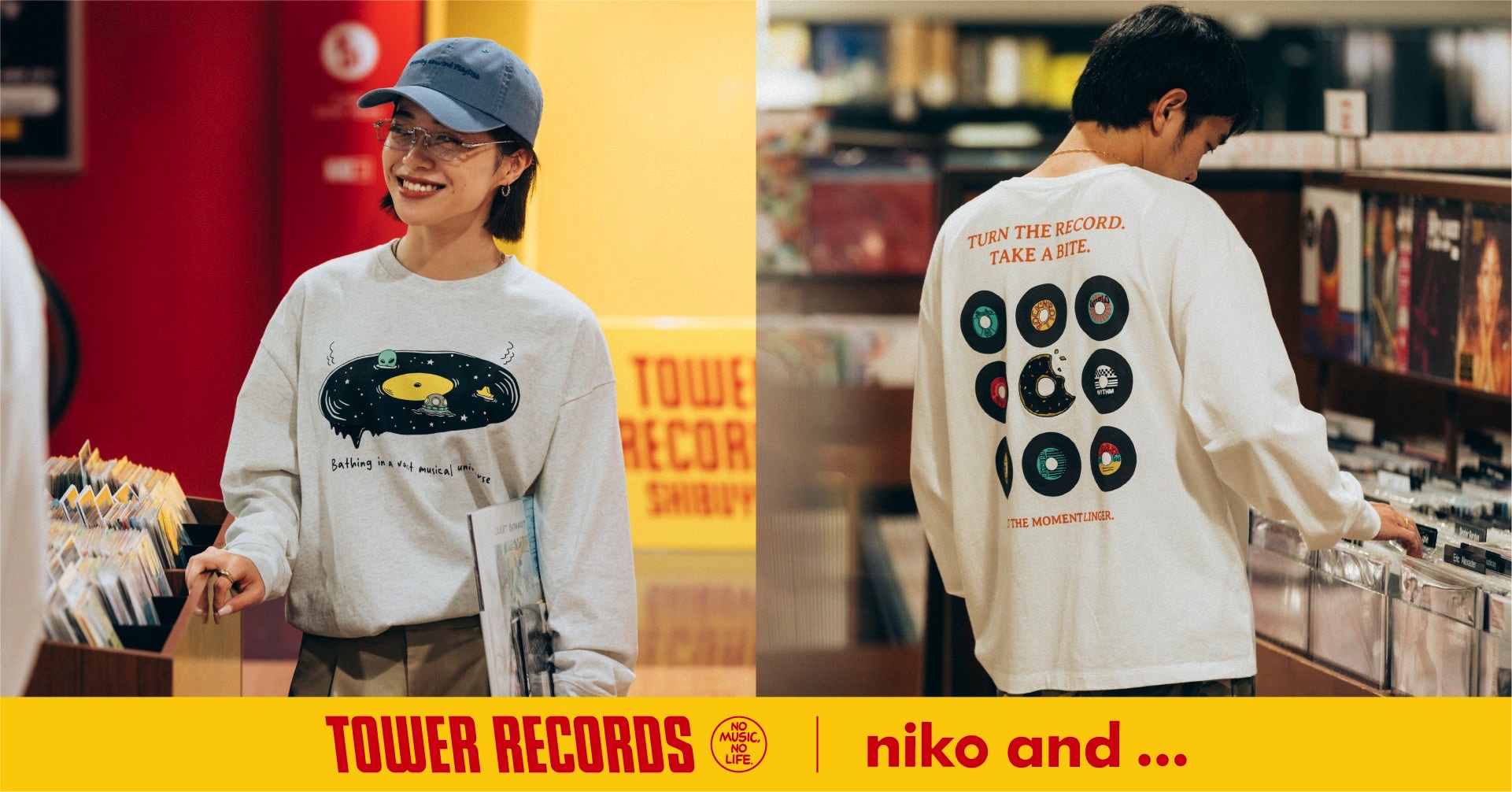 株式会社アダストリア(本部:東京都渋谷区渋谷2-21-1、代表取締役社長:木村 治)が展開するスタイルエディトリアルブランド「niko and …(ニコアンド)」は、音楽専門店「タワーレコード」のコラボレーションアイテムを2025年8月29日(金)より「niko and …」一部店舗および公式WEBストア and ST(アンドエスティ)にて、発売いたします。また、発売前日8月28日(木)18時からは、旗艦店「niko and … TOKYO」にて、どなたでもご参加いただける一夜限りのローンチイベントを開催いたします。本イベントでは、コラボアイテムの先行販売に加え、YouTubeライブ企画「“GOOD” nights」の特別編として、有観客でのライブパフォーマンスを実施。ゲストにはシンガーソングライターのkiki vivi lilyと、maco maretsを迎えて特別なライブパフォーマンスをお届けします。両アーティストは、2025年9月に開催される「UNI9UE PARK MARCHE’25」※への出演が決定しており、今回のローンチイベントを通して、フェス本番へとつながる世界観を一足先に体感いただけます。イベント会場では、コラボレーション企画の世界観を体感できるブースの展開や、DJイベントを行います。