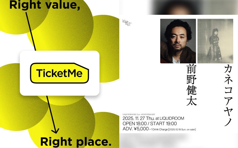 株式会社チケミー(本社:東京都港区、代表取締役:宮下大佑)が運営する電子チケットプラットフォーム「TicketMe(チケミー)」は、「LIQUIDROOM 21st ANNIVERSARY 前野健太 & カネコアヤノ」公演についてチケットの取り扱いが始まりました。