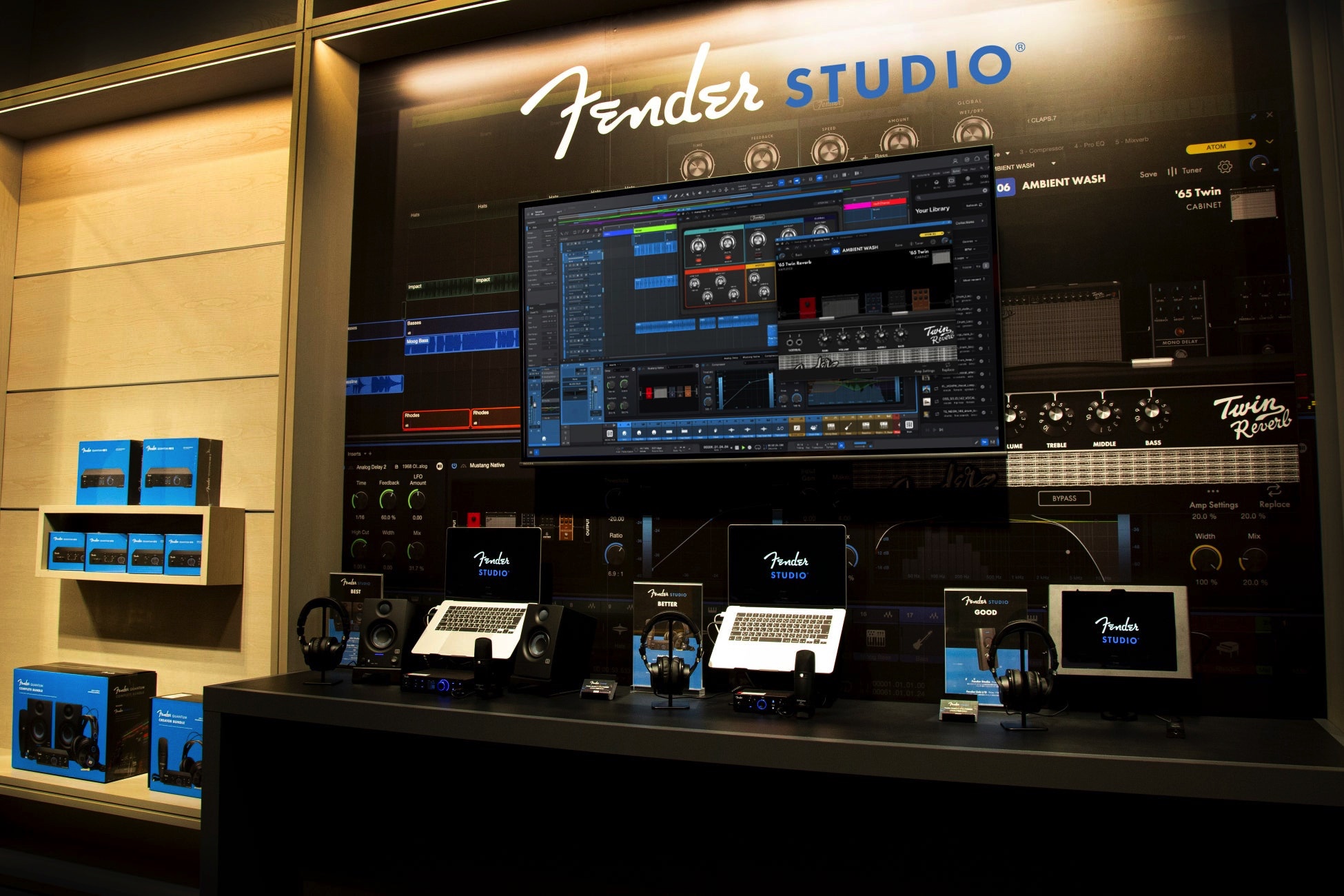東京・原宿のフェンダー旗艦店 Fender Flagship Tokyo では、今回発表された新ブランド 『Fender Studio』 のソフトウェアとハードウェアを実際に体験できる専用エリアをご用意しています。DAWソフトウェア『Fender Studio Pro』から『Fender Quantum』をはじめとしたハードウェアまで、フェンダーならではのサウンドとともに最新の音楽制作ツールをご体感ください。